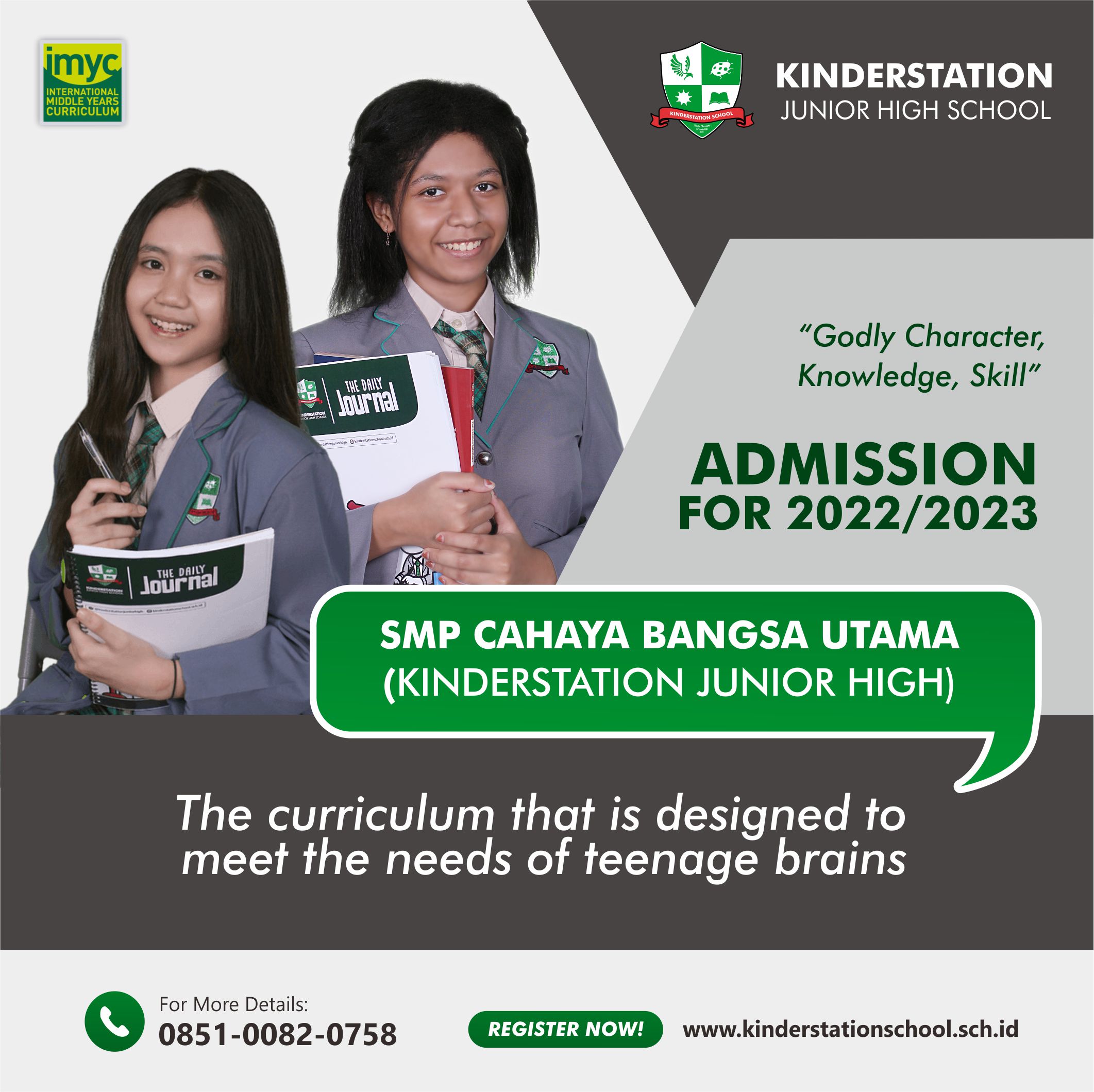 Every Kinderstation (Cahaya Bangsa Utama) student will achieve personal success (knowledge, skill, and Godly character) which will be useful for meeting the needs of society in both Indonesian, and international communities.
